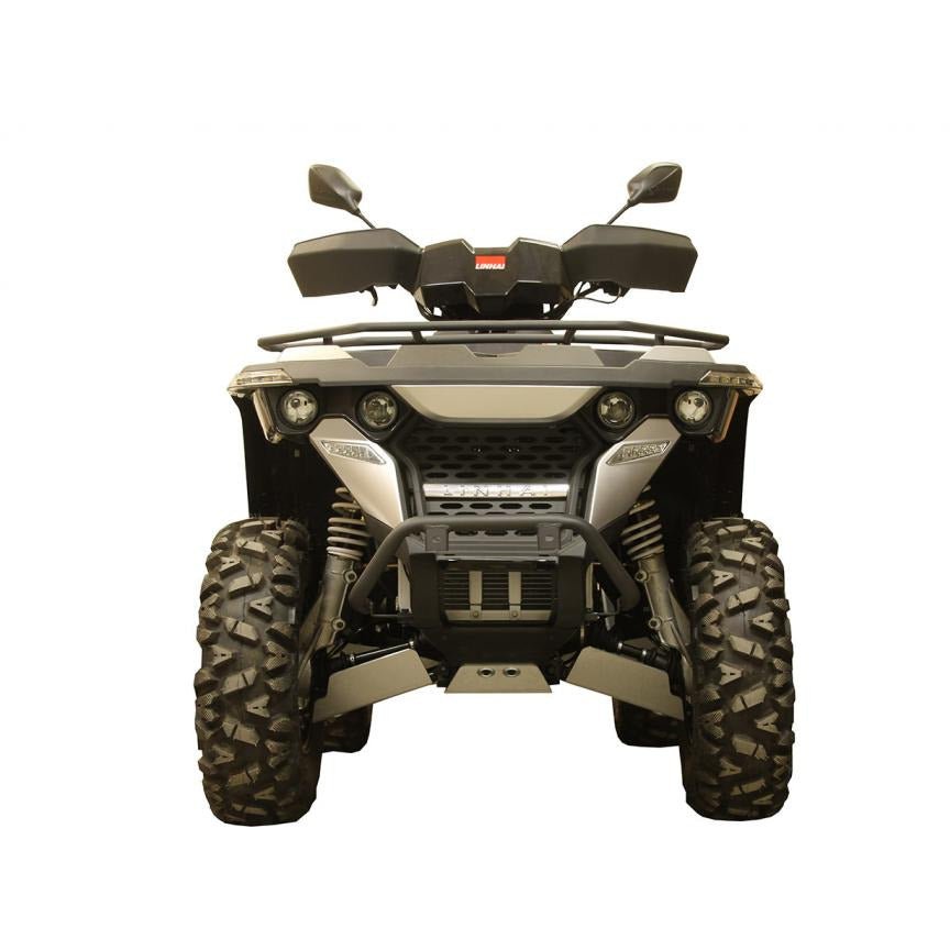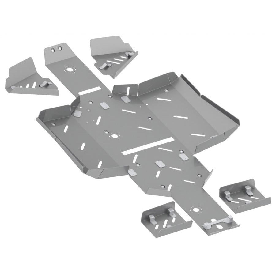 Protection complète de la partie inférieure et avant du quad. ouvertures en forme de côtes pour la drainage de la boue et le lavage plus facile. trous pour le changement d'huile. trous pour l'adaptateur de montage moyen IB. Instruction d'installation détaillée.